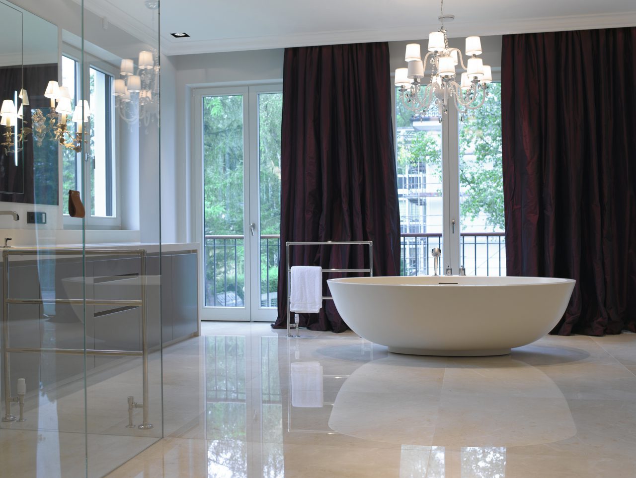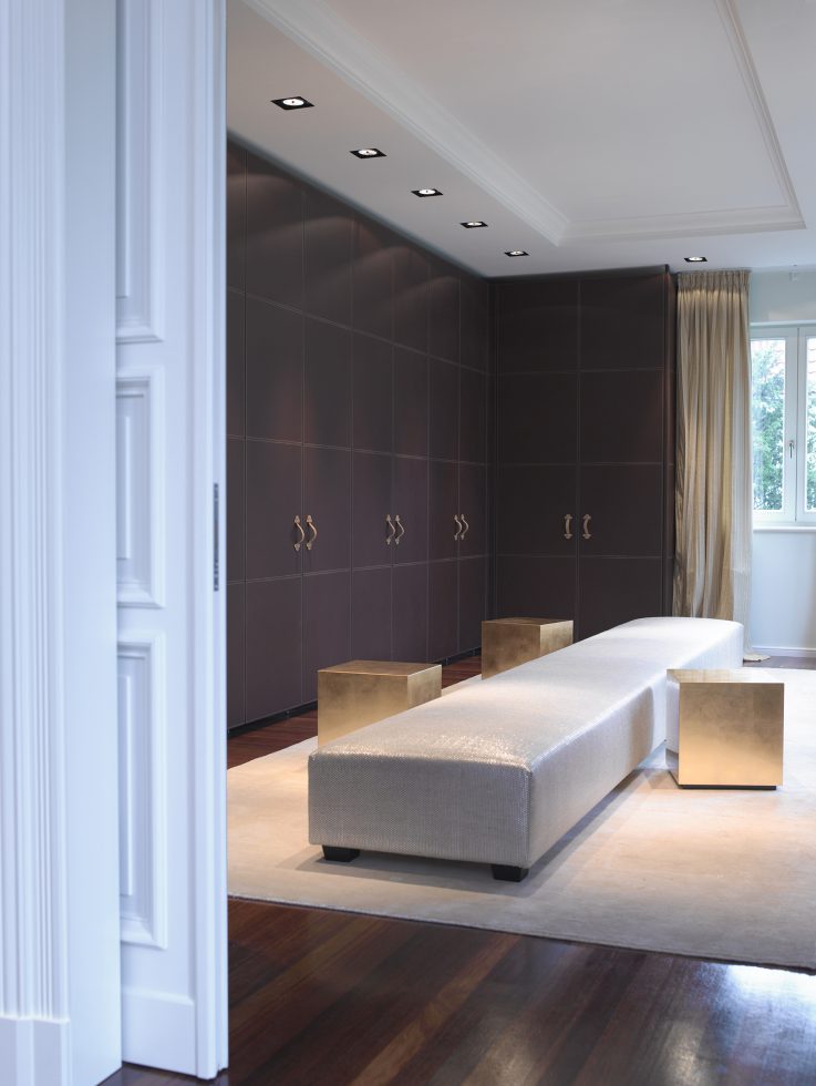 This villa in Berlin’s noble Grunewald district impresses both from the inside and outside with its sleek, yet extremely elegant appearance. Following the classic structure of this type of building, the representative living rooms are located on the ground floor and the master suite on the upper floor, while the attic floor is reserved for the children of the house. There is also a pool and a spacious wellness area in the basement.