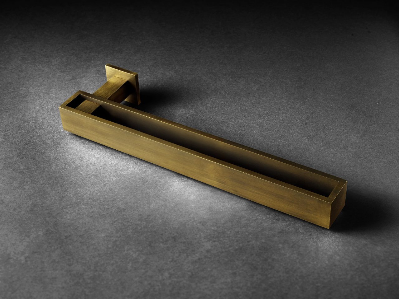 Like extracts from Mondrian’s Constructivist paintings, these door handles and buttons are made of bronzed brass, which reflect the artistic and aesthetic understanding of the 1920s and the austere, minimalist concepts of De Stijl.