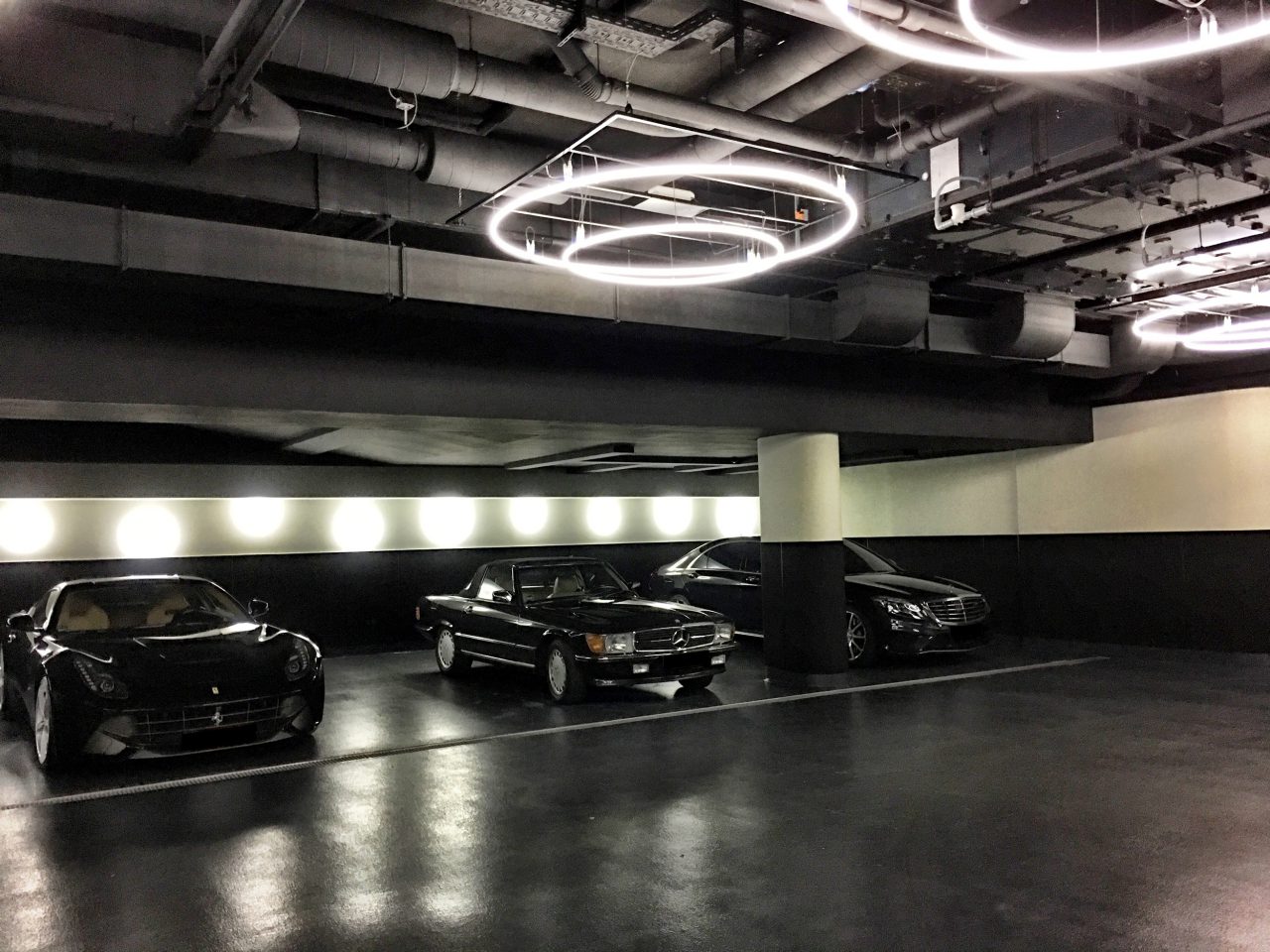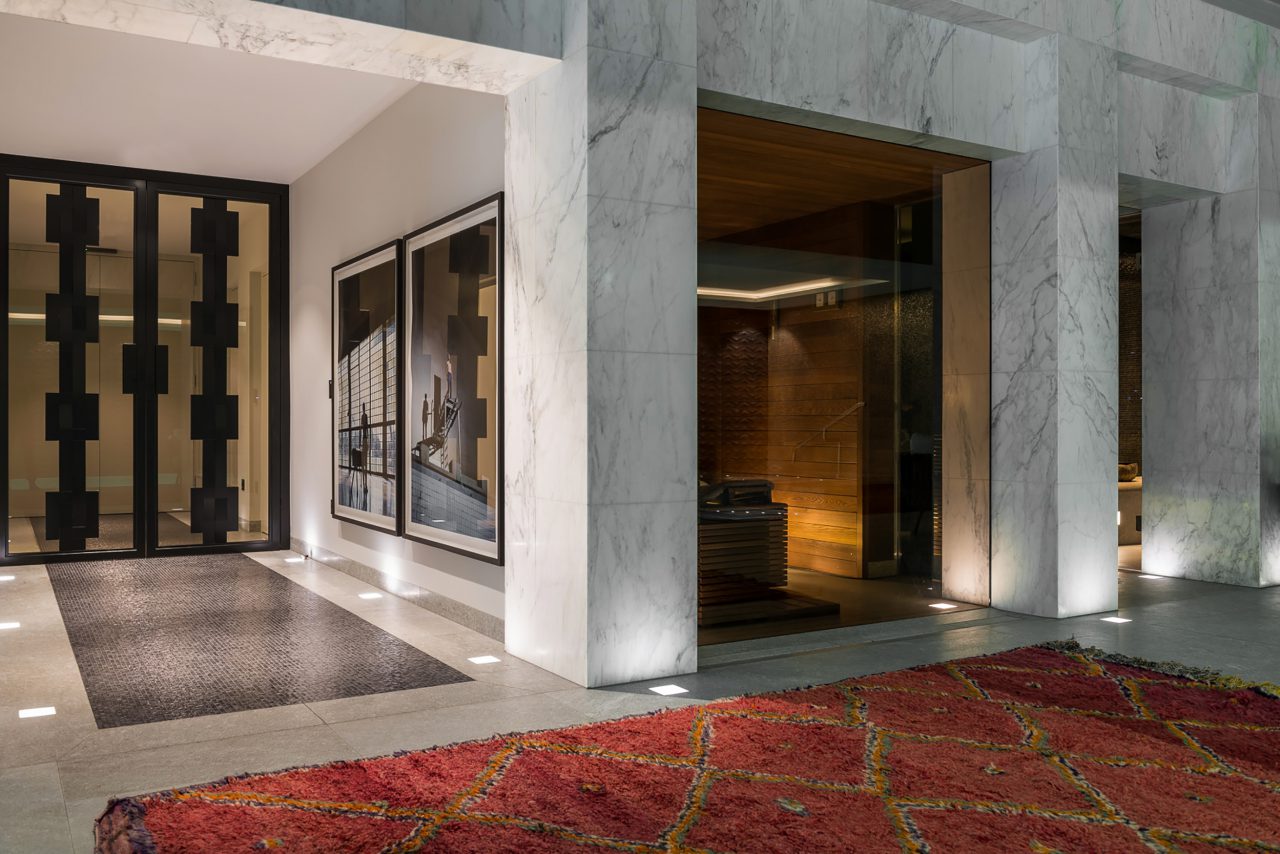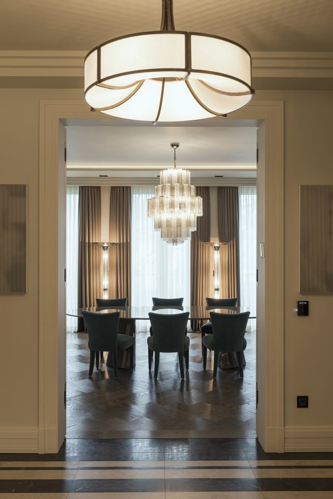 New build of a prestigious city villa with a large wellness area and spacious underground garage. The exclusive interior features all kinds of custom-made elements. One example is the pivot door system between the kitchen and dining room: The three solid door leaves, consisting of a steel frame with glass infill, can be turned on their own axis.