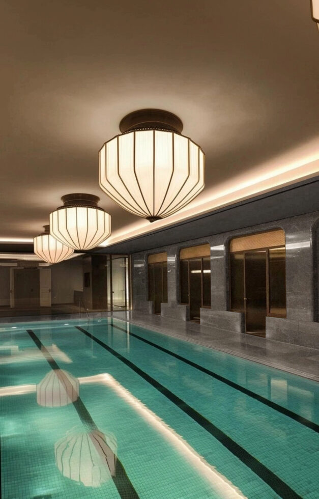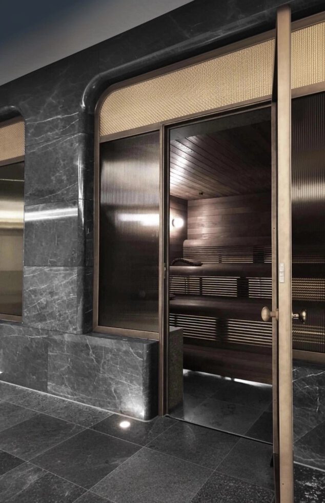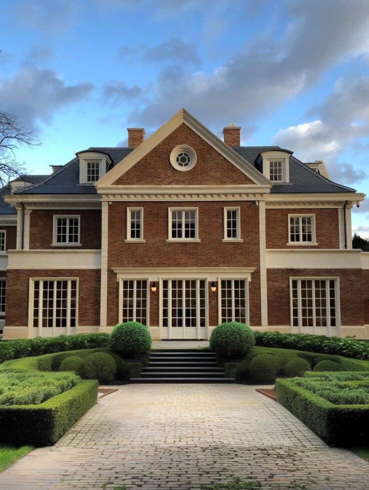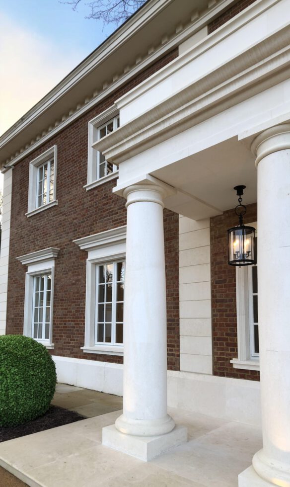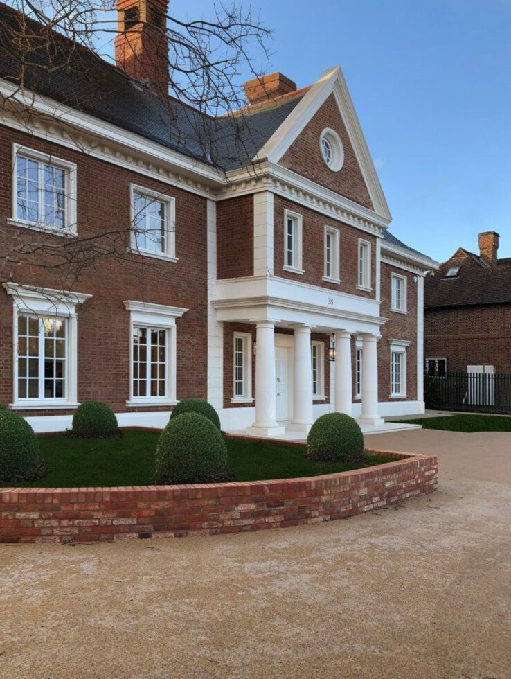 The floor plan of this new villa is arranged around two internal atriums, which provide enough light for the central areas. In addition to spacious, representative living spaces and several bedrooms with en-suite bathrooms, the building also boasts a large swimming pool with a wellness and fitness area in the basement. The high-quality interior design combines contemporary elements with the traditional English style.