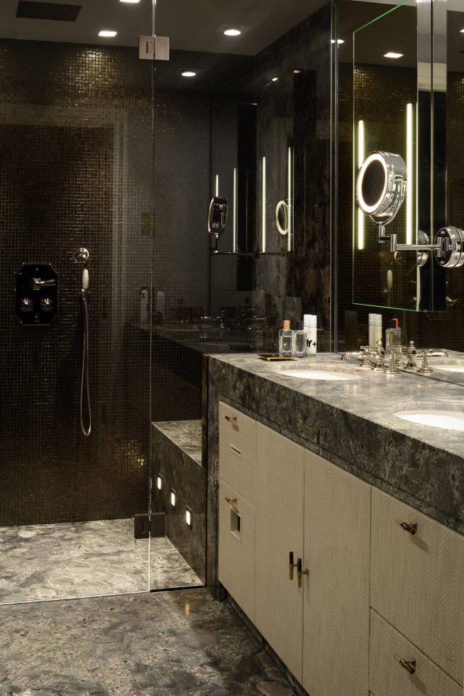 The modern, two-storey villa with flat roof from the 1960s has been completely gutted and refurbished. In contrast to the somewhat simpler appearance on the outside, an extraordinary and extravagant design unfolds inside, revealing the property’s appealing attributes.