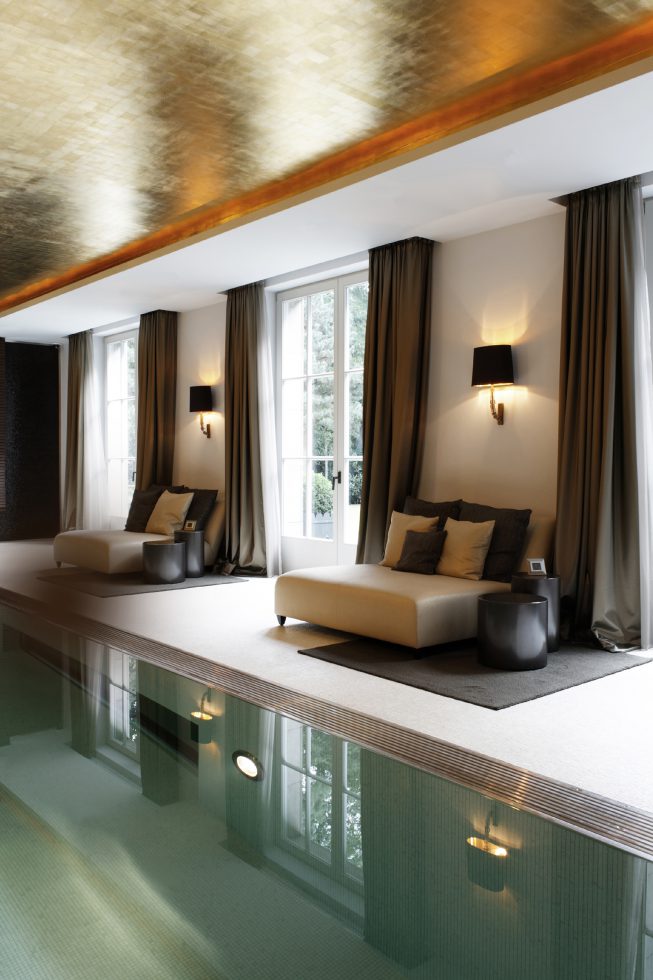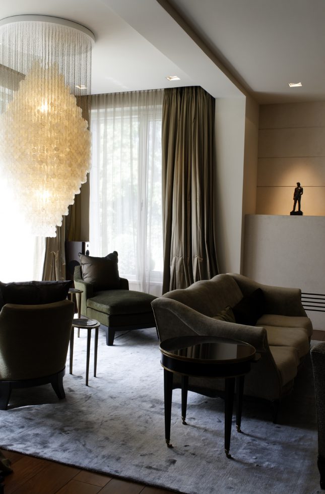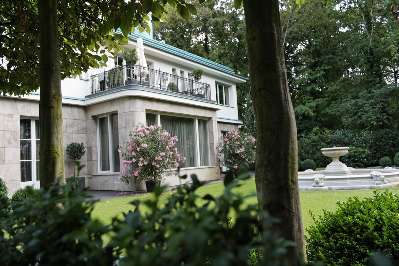 The villa from the 1930s was carefully renovated in compliance with strict historic preservation requirements and the floor layout adapted to today’s needs. On the ground floor of the new rear extension, there is a swimming pool and on the basement floor a spacious wellness area and cinema. In the choice of exquisite materials, the new interior clearly references the villa’s period of origin, which is accentuated by the use of individual and original stylistic elements.